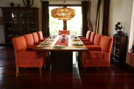 Three and a half meter dining table, 10 dining armchairs, kitchen tables, stools, play table, sofas and armchairs |